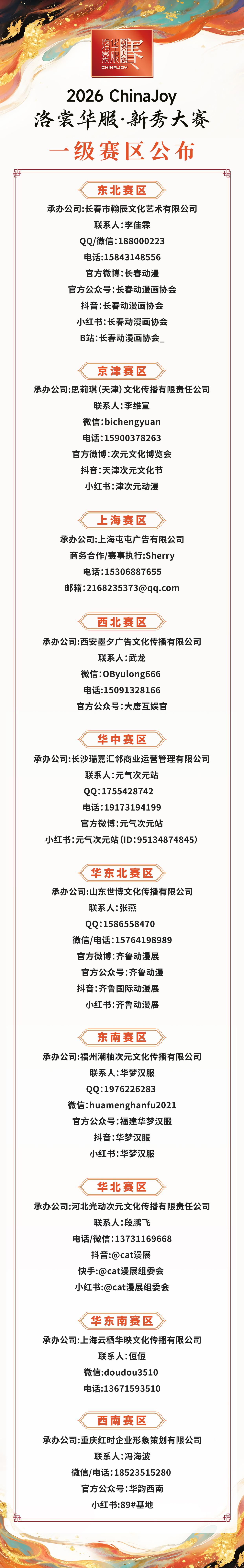 2026年ChinaJoy洛裳华服·新秀大赛一级赛区公布!